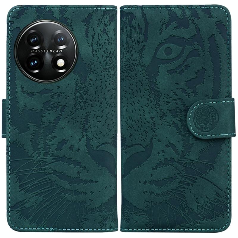 Θήκη τηλεφώνου από δέρμα με ανάγλυφο μοτίβο τίγρης για OnePlus 11 (Ροζ)