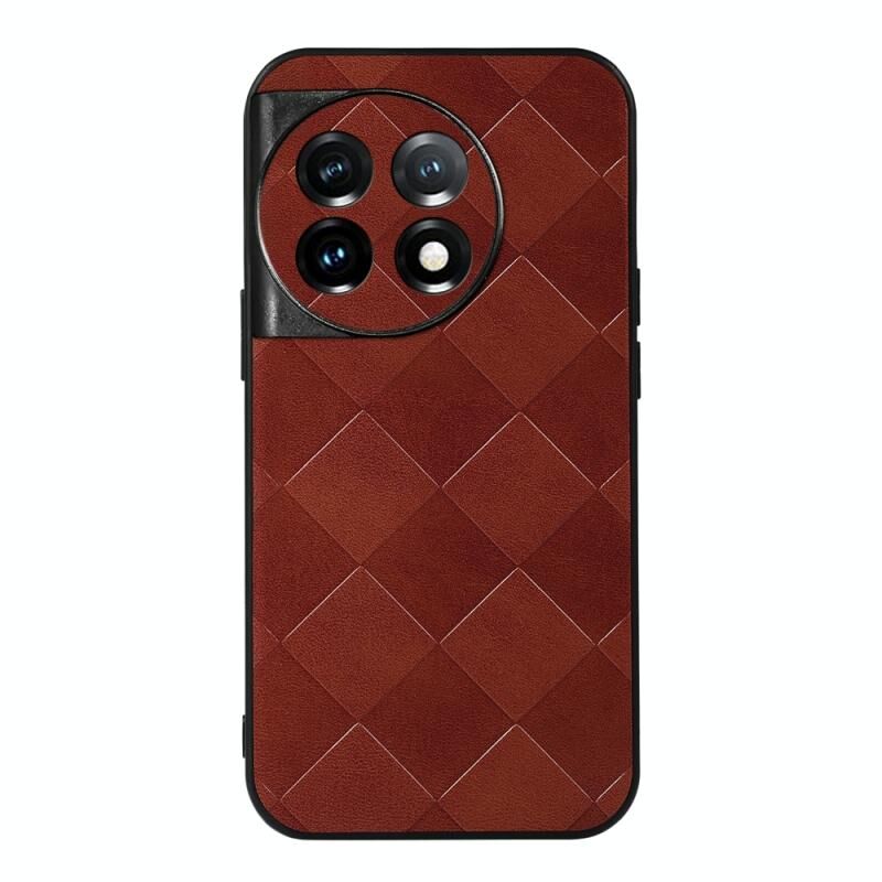 Για OnePlus 11 Weave καρό PU υπόθεση τηλεφώνου (καφέ)