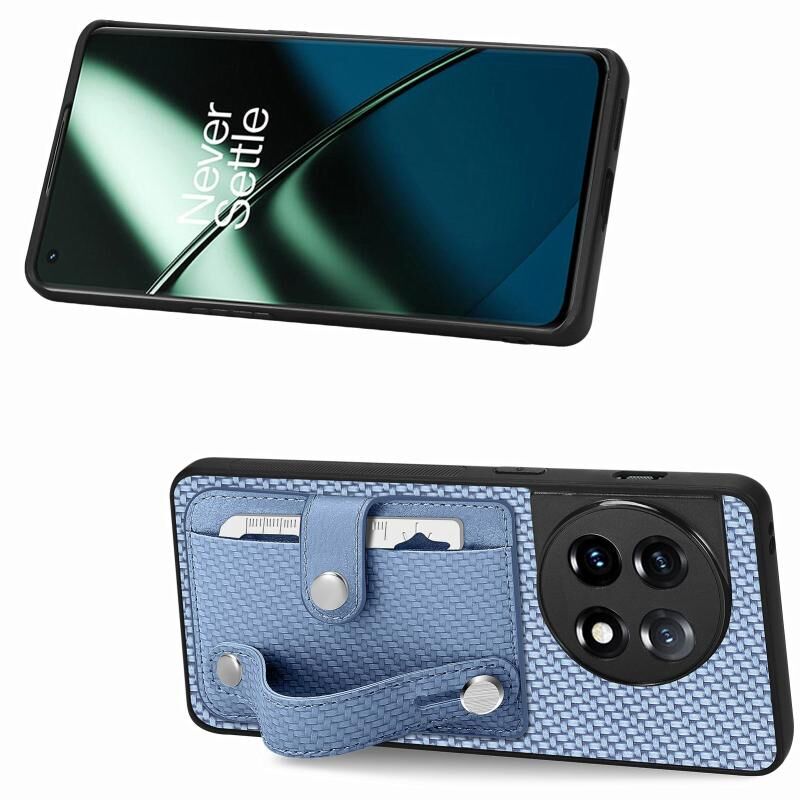 Για OnePlus 11 Wristband Kickstand κάρτα πορτοφόλι πίσω κάλυμμα τηλεφώνου υπόθεση με εργαλείο μαχαίρι (μπλε)