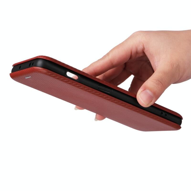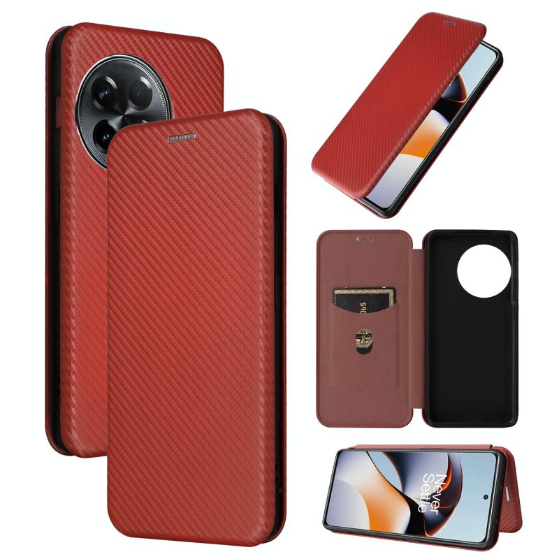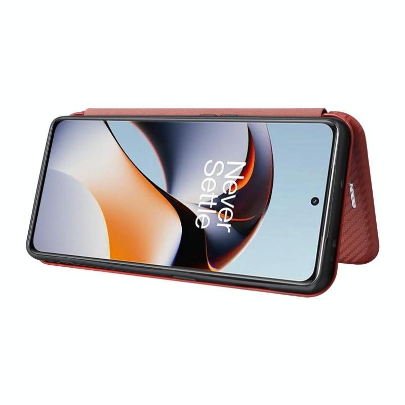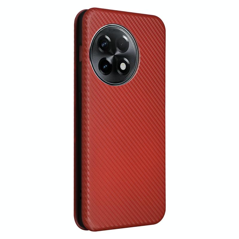 Θήκη τηλεφώνου από δέρμα με υφή ανθρακονήματος για OnePlus 11R 5G (Καφέ)