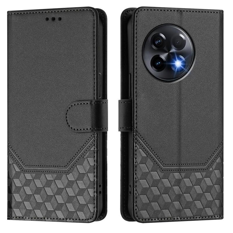 Για OnePlus 11R 5G Global Honeycomb ανάγλυφη RFID δερμάτινη θήκη τηλεφώνου (Μαύρο)