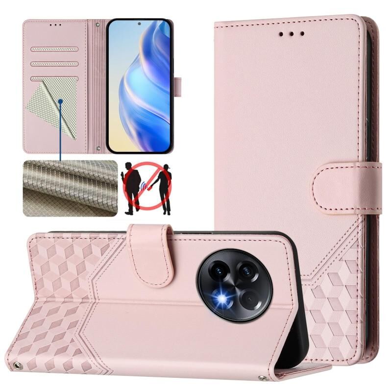 Για OnePlus 11R 5G Παγκόσμια κηρήθρα ανάγλυφη RFID δερμάτινη θήκη τηλεφώνου (ροζ)