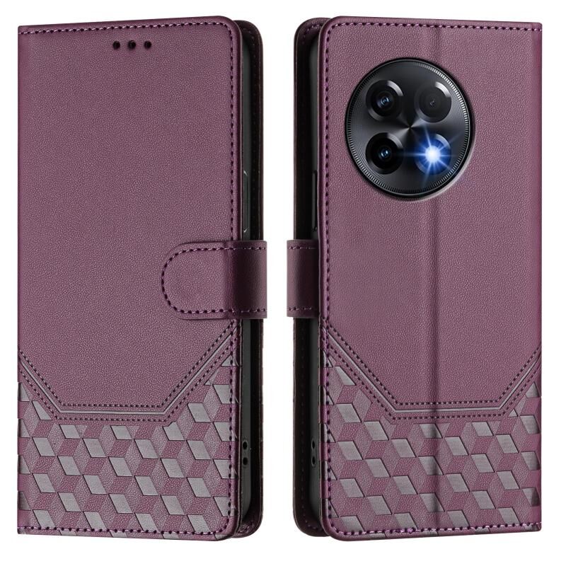 Για OnePlus 11R 5G Παγκόσμια κηρήθρα ανάγλυφη RFID δερμάτινη θήκη τηλεφώνου (Violet)