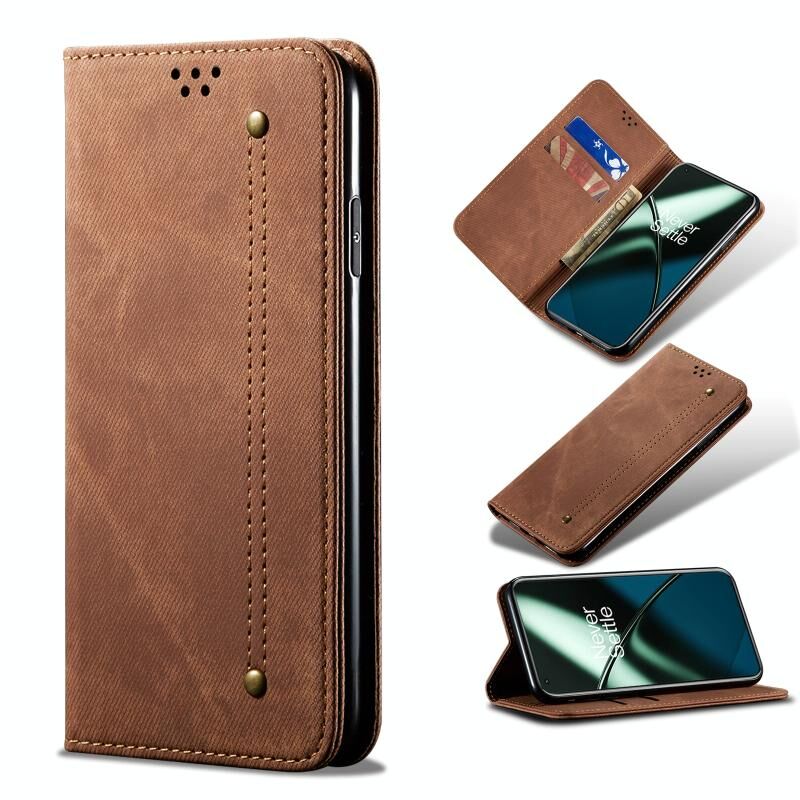 Για OnePlus 11R Denim Texture Flip δέρμα τηλέφωνο υπόθεση (καφέ)