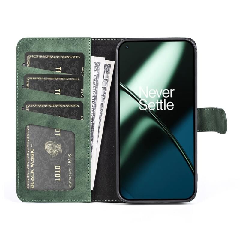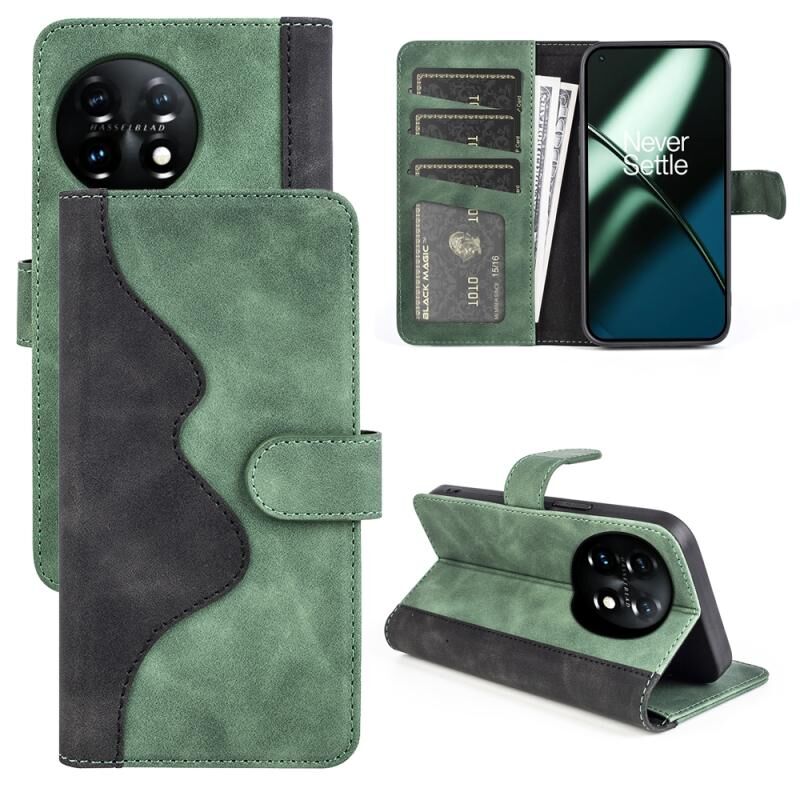 Για OnePlus 11T ραφή οριζόντια Flip υπόθεση τηλεφώνου δέρμα (πράσινο)