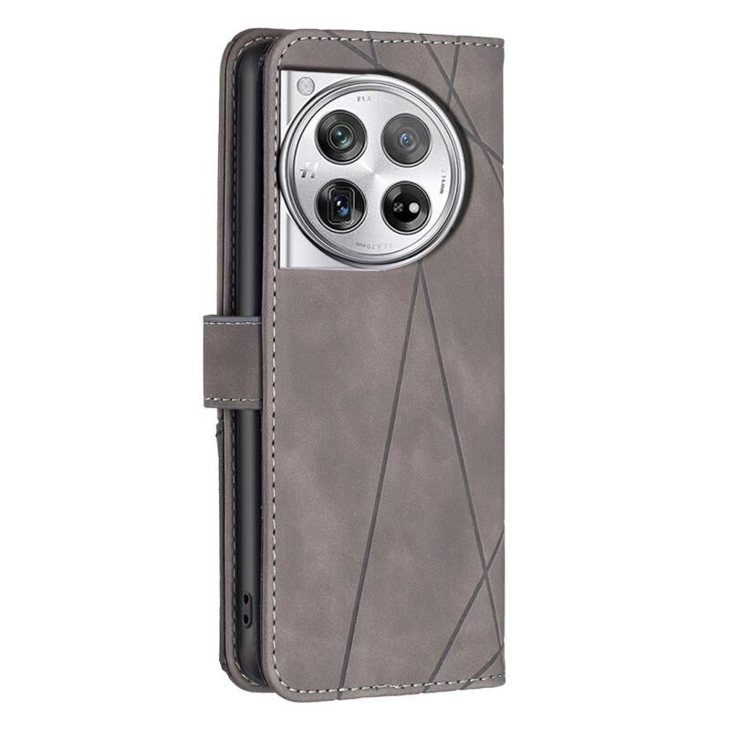 Για OnePlus 12 5G BF05 μαγνητική πόρπη Rhombus υφή δερμάτινη θήκη τηλεφώνου (γκρι)