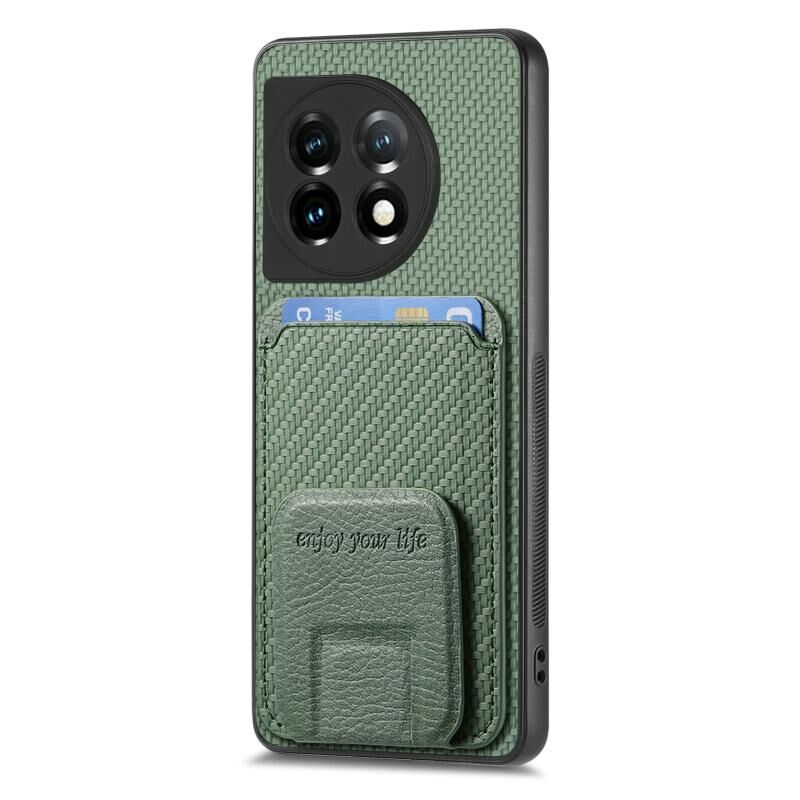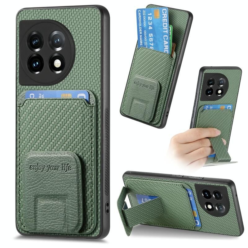 For OnePlus 12 5G Carbon Fiber Card Bag Fold Stand Phone Case(Green)