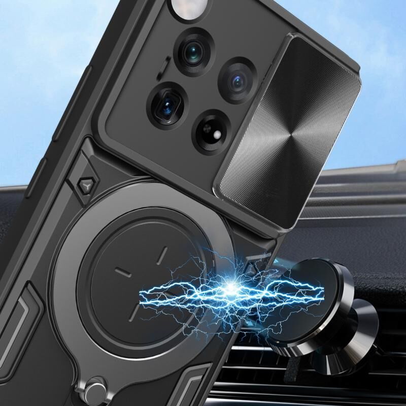 Θήκη τηλεφώνου για OnePlus 12 5G Global με υφή CD, συρόμενο προστατευτικό κάμερας και μαγνητική βάση (Ροζ)