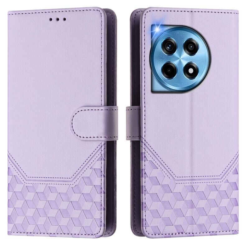 Για OnePlus 12 5G Παγκόσμια κηρήθρα ανάγλυφη RFID δερμάτινη θήκη τηλεφώνου (Light Purple)