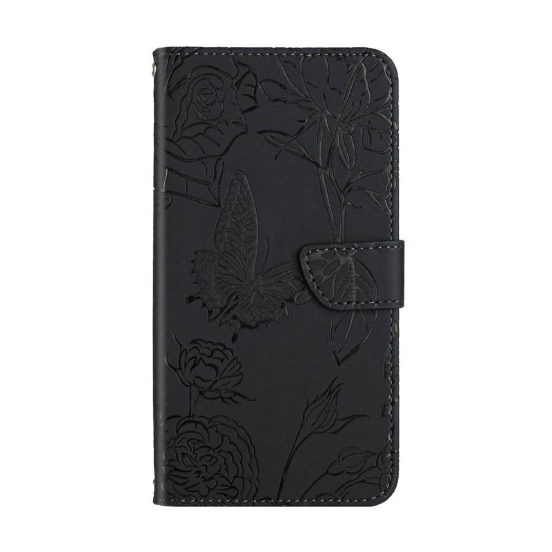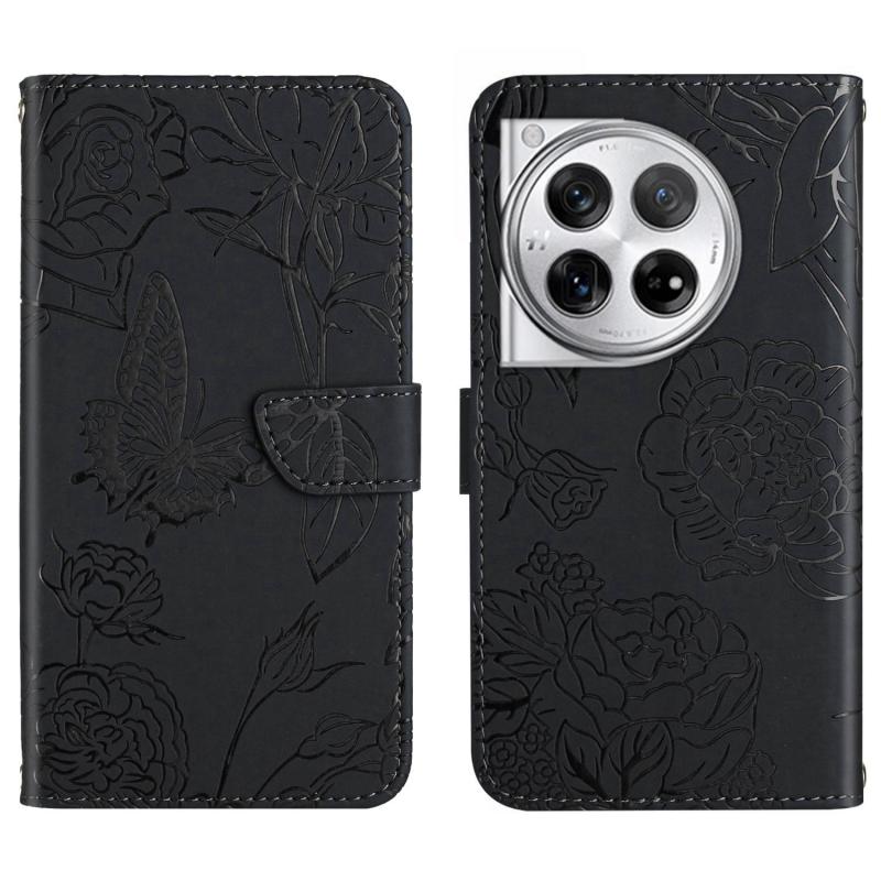For OnePlus 12 5G Global Skin Feel Butterfly Peony Embossed Leather Phone Case(Black)