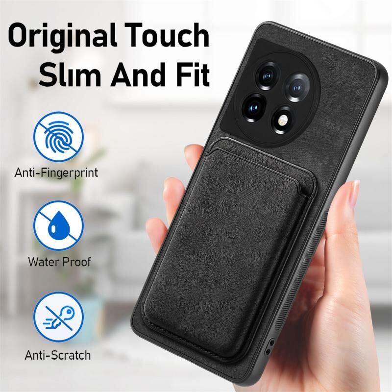 Για OnePlus 12 5G Ρετρό δερμάτινη κάρτα τσάντα μαγνητική θήκη τηλεφώνου (μαύρο)