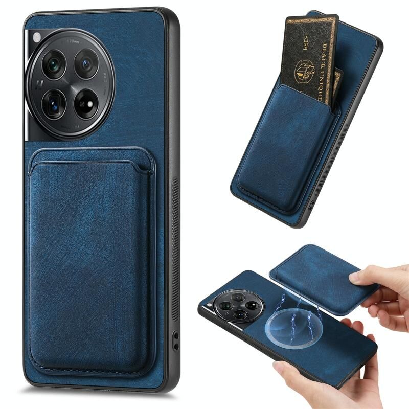 Για OnePlus 12 5G ρετρό δερμάτινη κάρτα τσάντα τσάντα μαγνητική θήκη τηλεφώνου (μπλε)