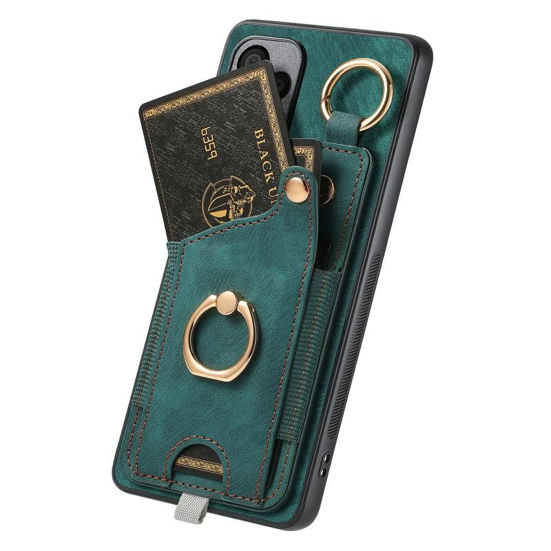 Για OnePlus 12 5G Ρετρό δέρμα-feel Ring Card τσάντα υπόθεση τηλεφώνου με Hang Loop (πράσινο)