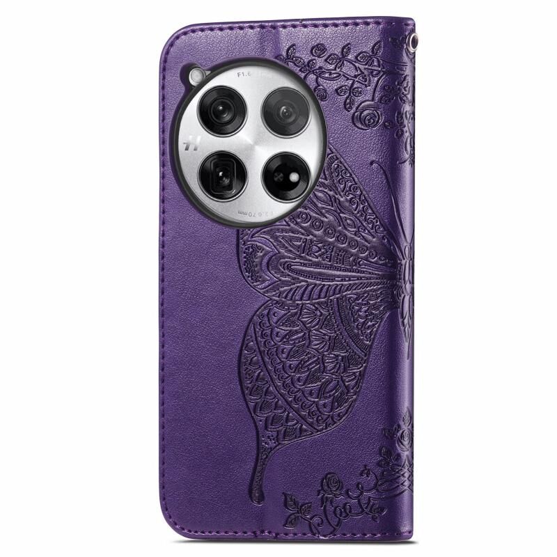 Θήκη τηλεφώνου OnePlus 12 Butterfly Love Λουλουδάτη Δερμάτινη με ανάγλυφο σχέδιο (Μπλε)