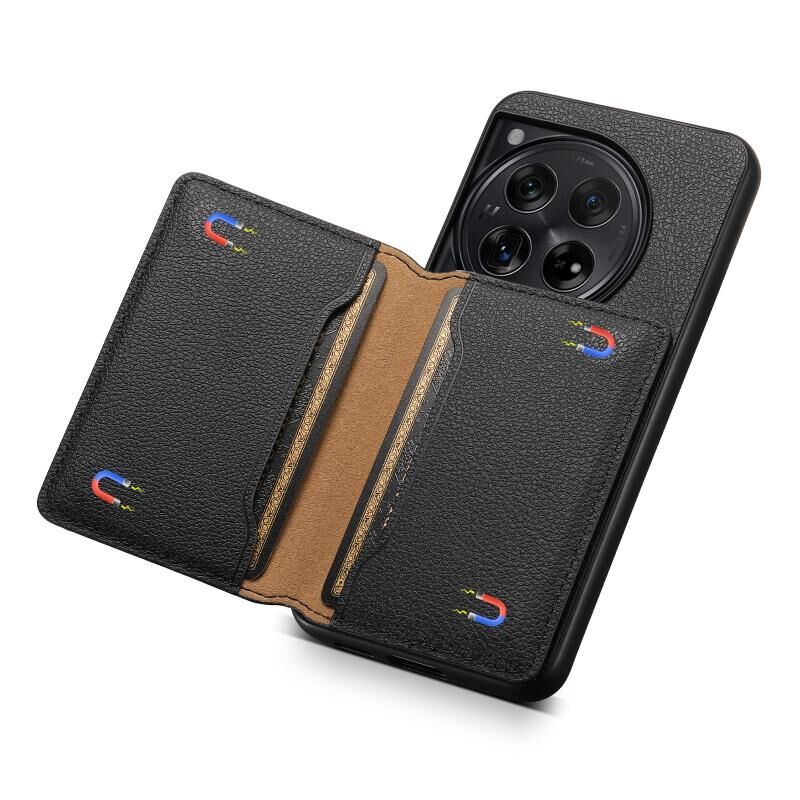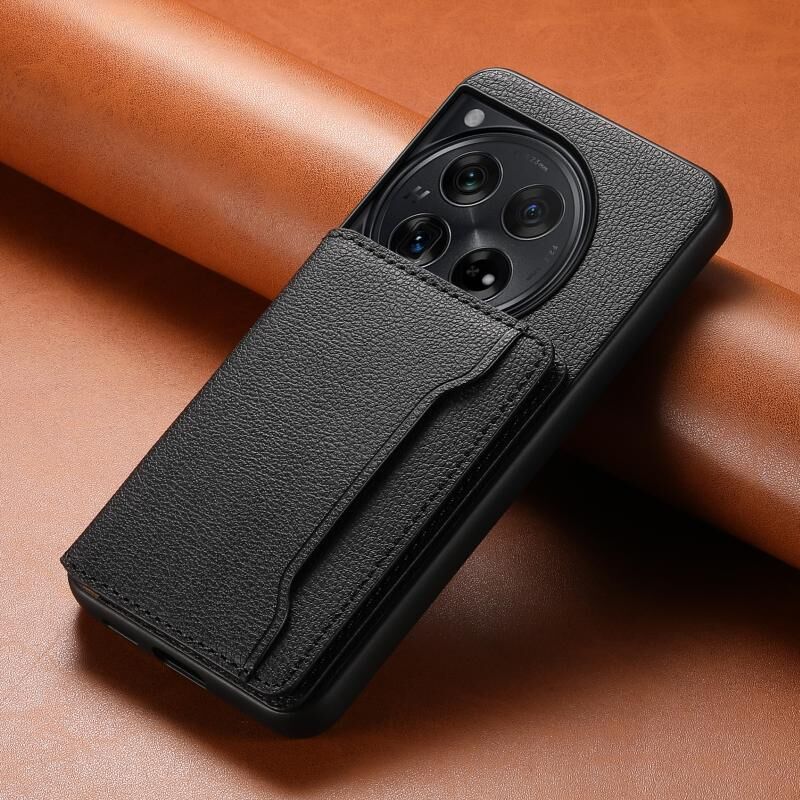 Θήκη τηλεφώνου πλήρους κάλυψης με υφή μοσχαριού για OnePlus 12 (Μαύρο)
