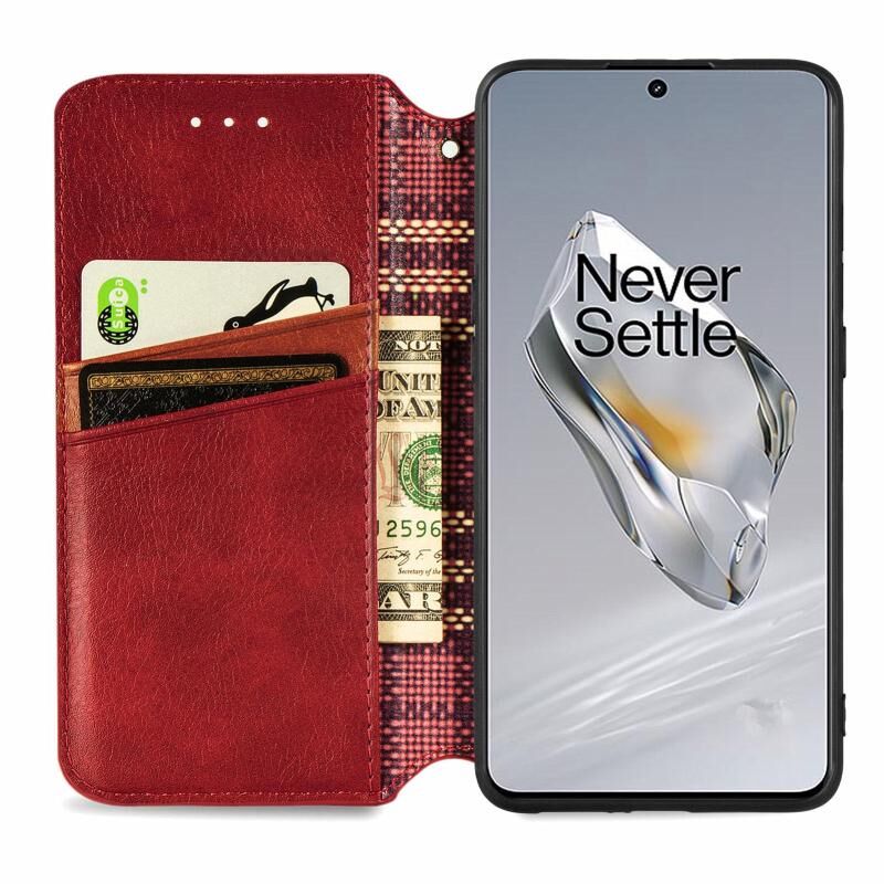 For OnePlus 12 Cubic Grid Pressed Magnetic Leather Phone Case(Red)
