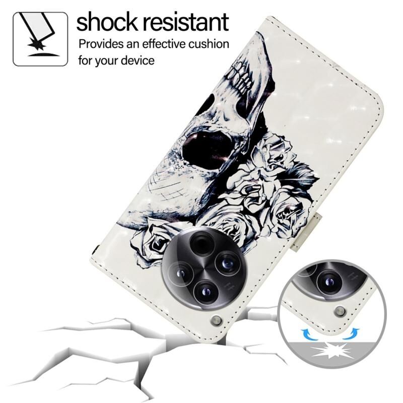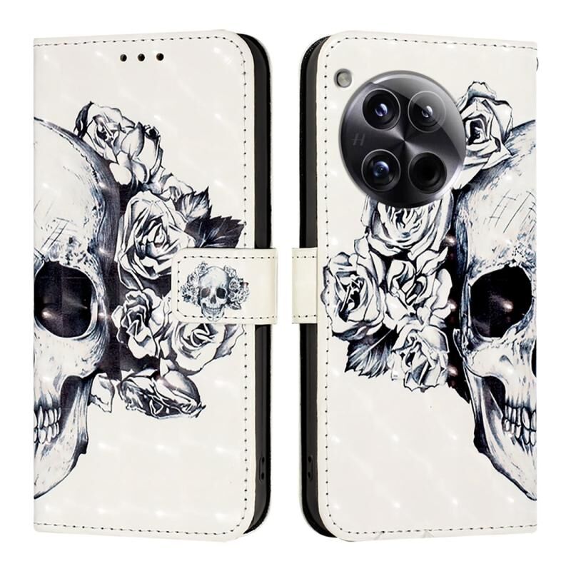 Θήκη τηλεφώνου από δέρμα με οριζόντια αναδίπλωση και τρισδιάστατη βαφή για OnePlus 12 Global (Κρανίο)