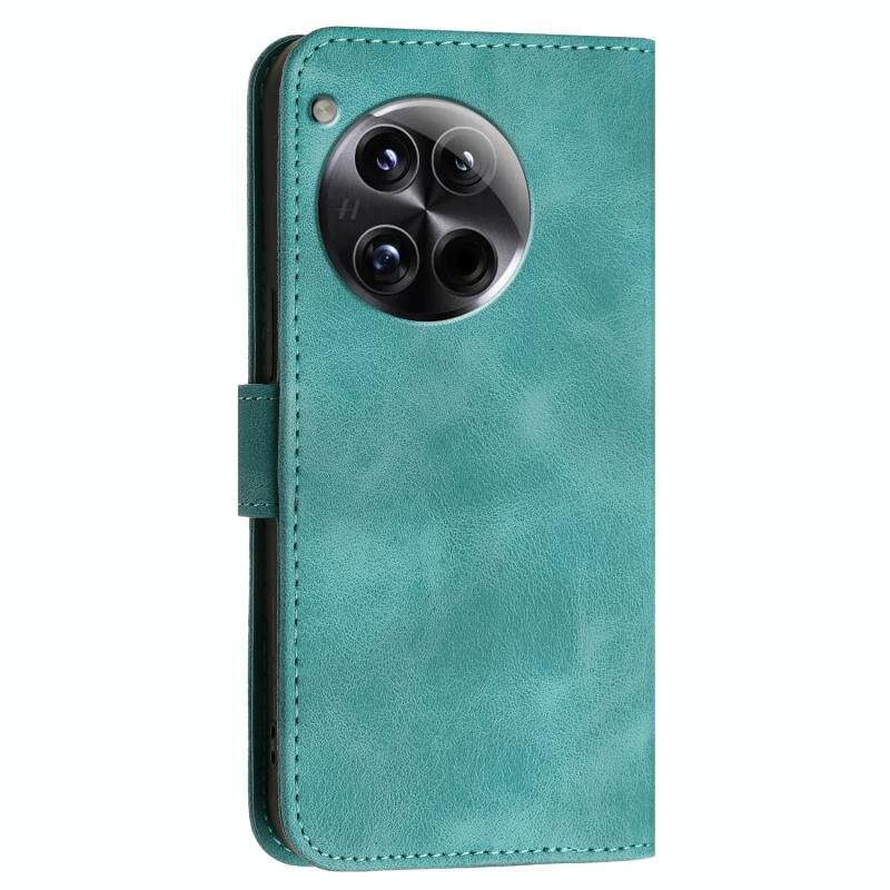 Θήκη τηλεφώνου από δέρμα με σχέδιο πεταλούδας σε γκριτ και λουρί για OnePlus 12 (Ανοιχτό Μωβ)