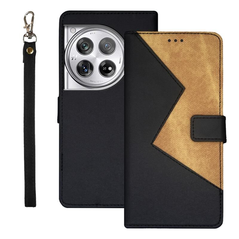 For OnePlus 12 idewei Two-color Splicing Leather Phone Case(Black) (idewei)