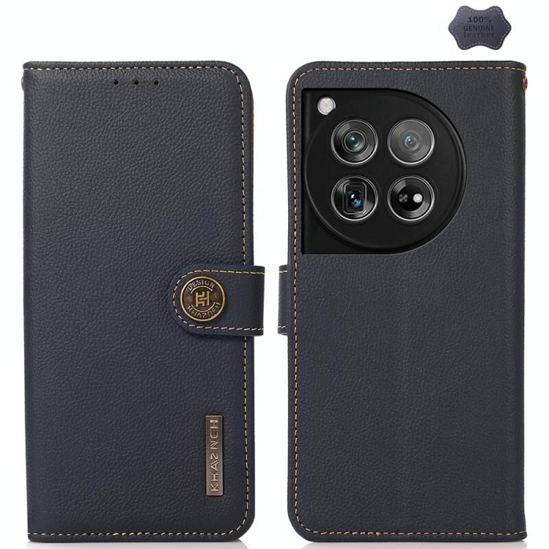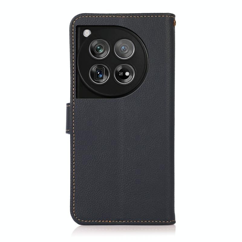 Θήκη τηλεφώνου OnePlus 12 KHAZNEH Custer από γνήσιο δέρμα με προστασία RFID (Μαύρο)