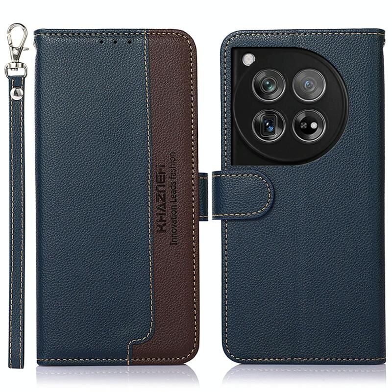 Θήκη τηλεφώνου OnePlus 12 KHAZNEH με υφή δέρματος Litchi και προστασία RFID (Καφέ)