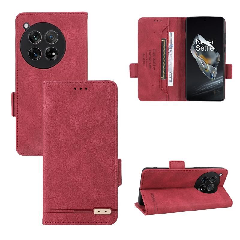 Για OnePlus 12 μαγνητικό κούμπωμα δερμάτινη θήκη τηλεφώνου (κόκκινο)