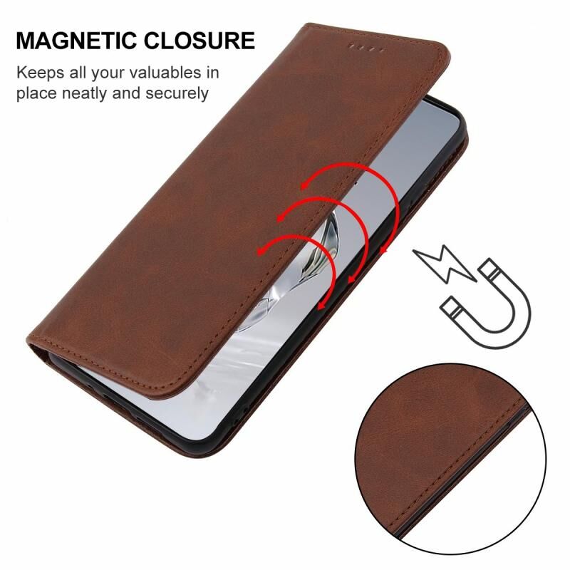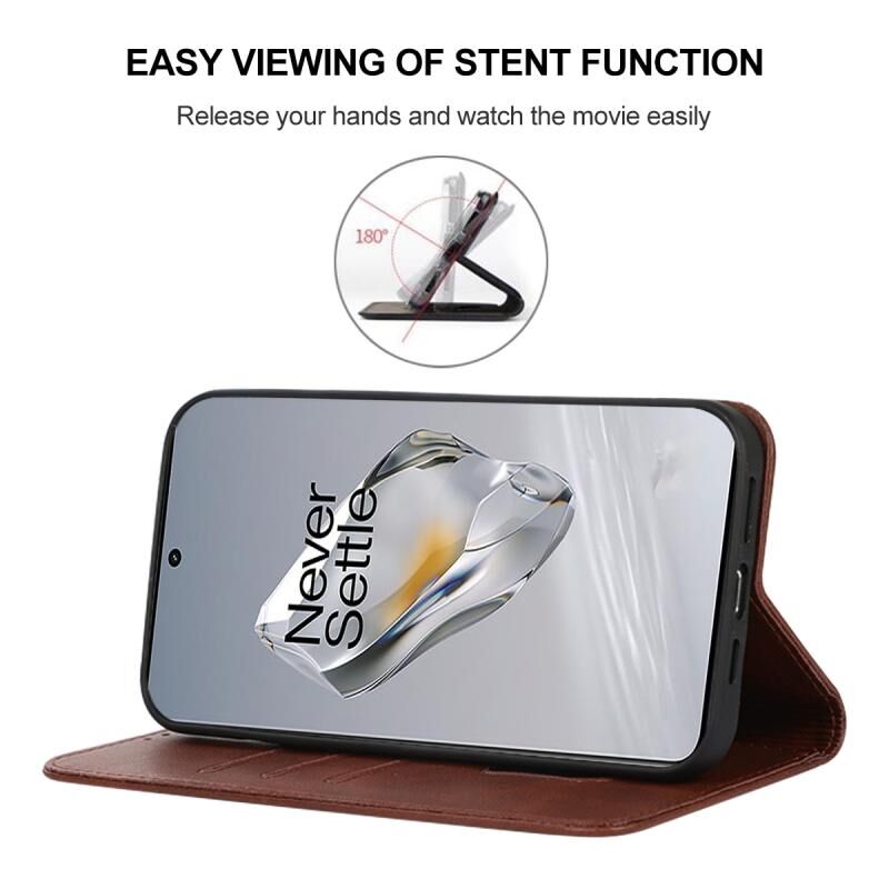 Για OnePlus 12 μαγνητικό κλείσιμο δερμάτινη θήκη τηλεφώνου (καφέ)