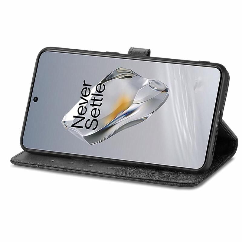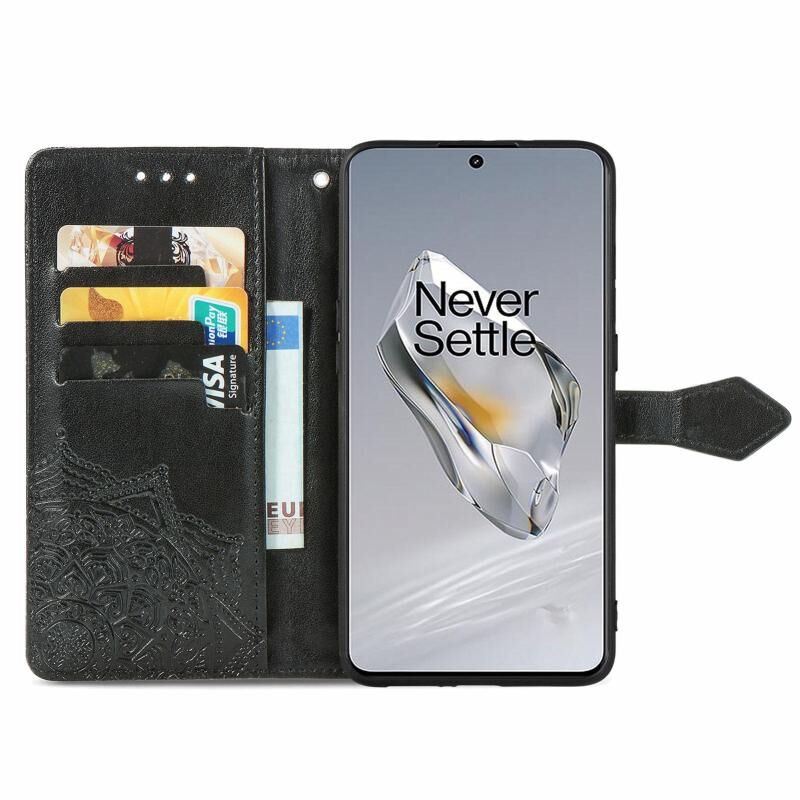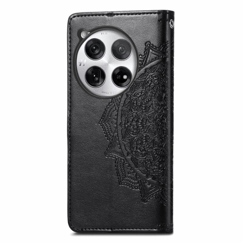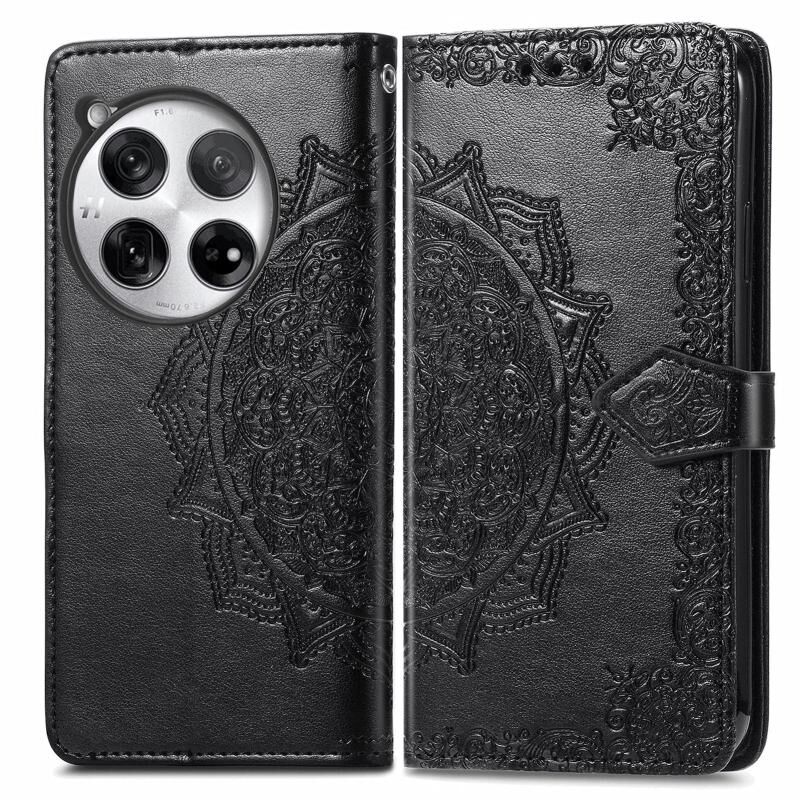 Για OnePlus 12 Mandala λουλούδι ανάγλυφο δερμάτινη θήκη τηλεφώνου (μαύρο)
