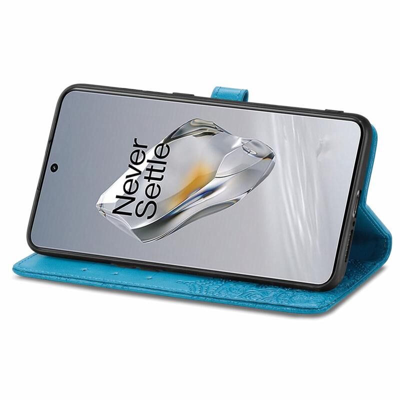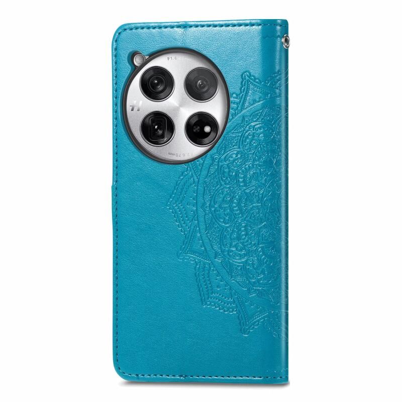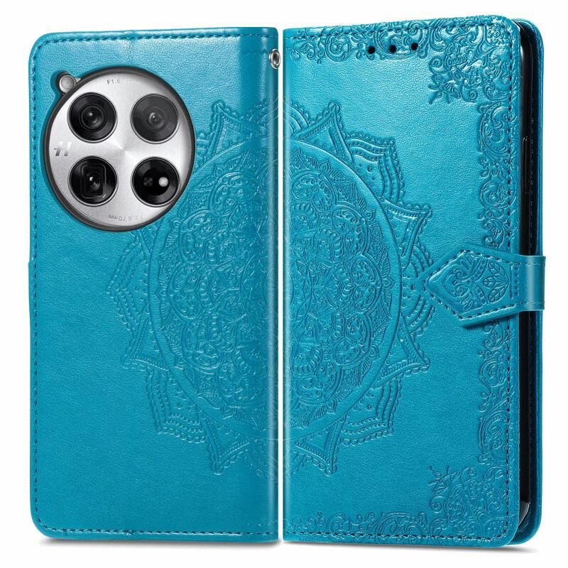 Για OnePlus 12 Mandala λουλούδι ανάγλυφο δερμάτινη θήκη τηλεφώνου (μπλε)