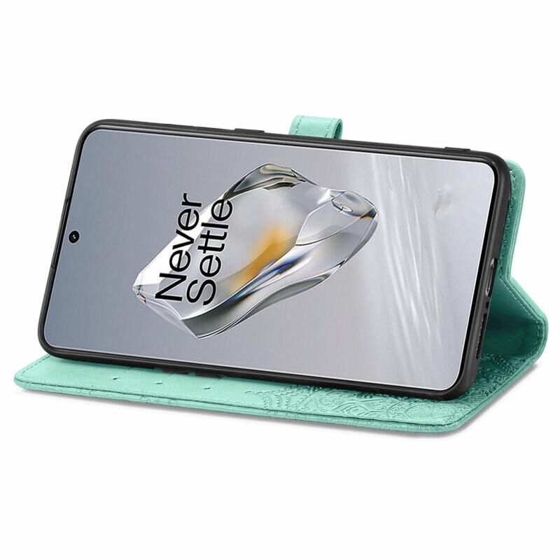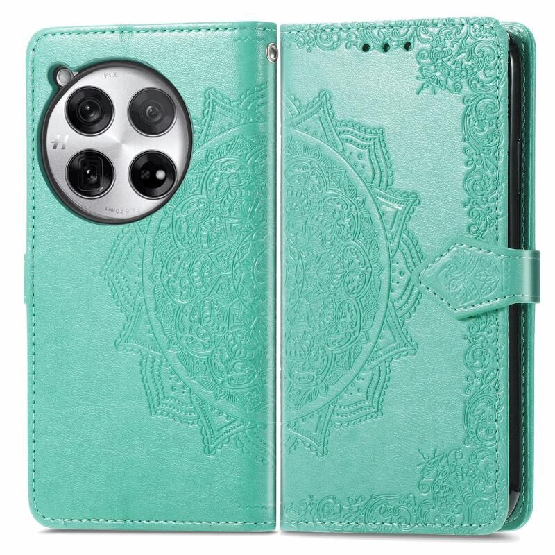 Για OnePlus 12 Mandala λουλούδι ανάγλυφο δερμάτινη θήκη τηλεφώνου (πράσινο)