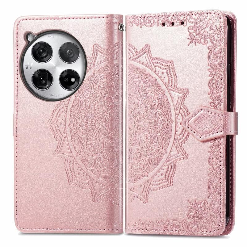 Για OnePlus 12 Mandala λουλούδι ανάγλυφο δερμάτινη θήκη τηλεφώνου (Rose Gold)