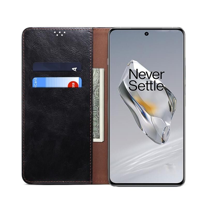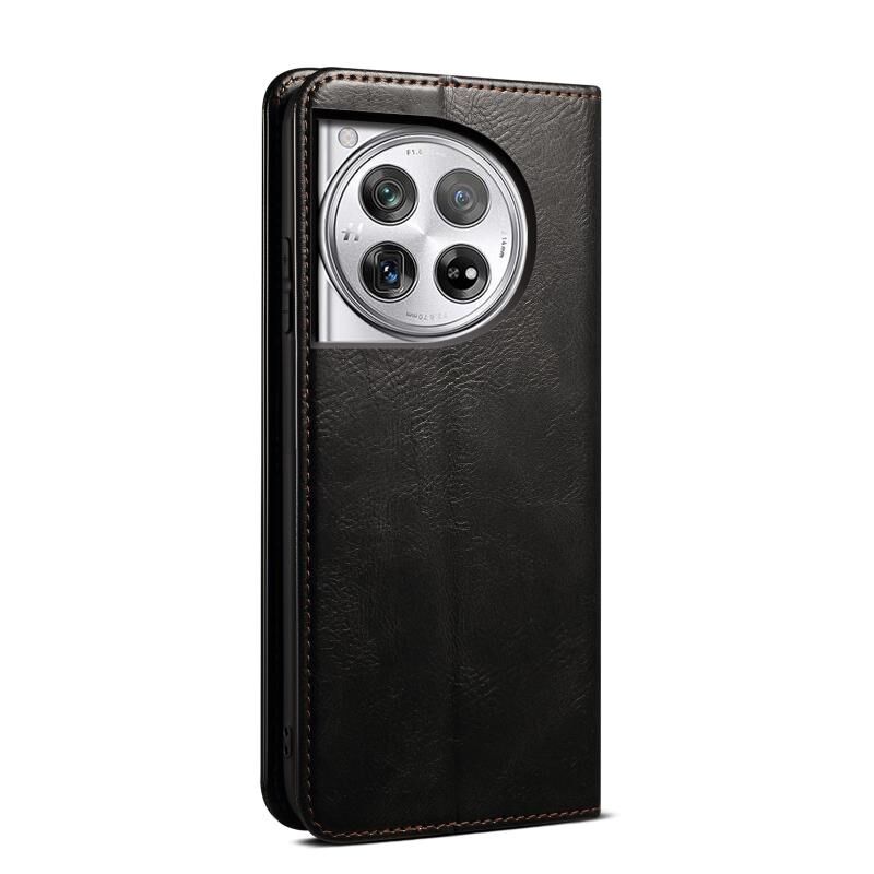 Για OnePlus 12 Oil Wax Crazy Horse Υφή δερμάτινη θήκη τηλεφώνου (Μαύρο)
