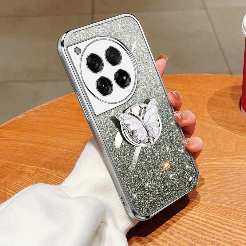 Για OnePlus 12 επιμεταλλωμένο διαβάθμιση Glitter πεταλούδα κάτοχος TPU τηλέφωνο υπόθεση (ασημί)