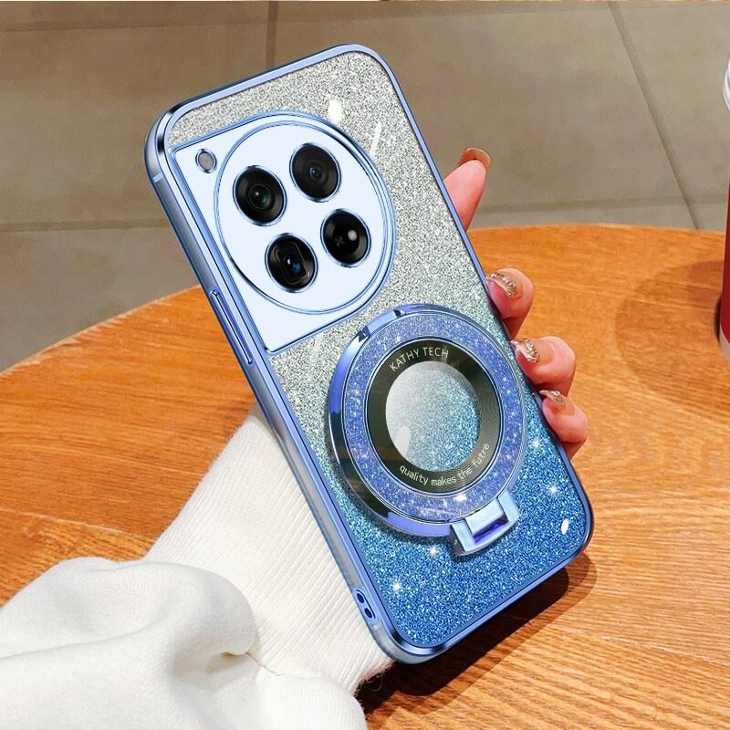 Για OnePlus 12 επιμεταλλωμένο διαβάθμιση Glitter στρογγυλή κάτοχος TPU τηλέφωνο υπόθεση (Sierra Blue)