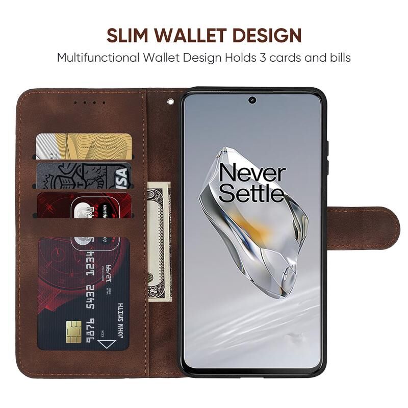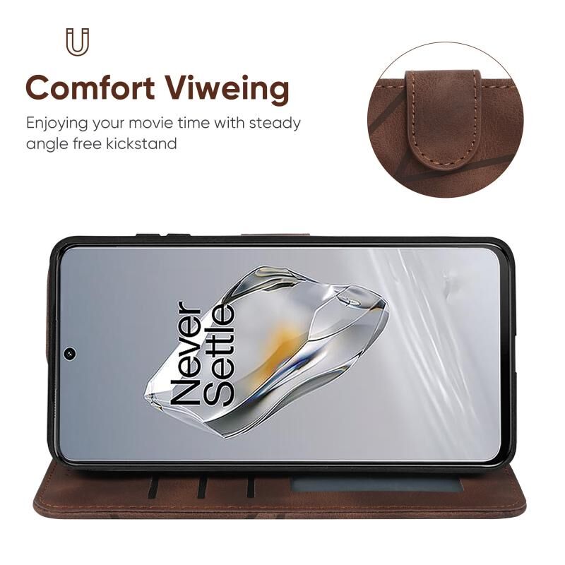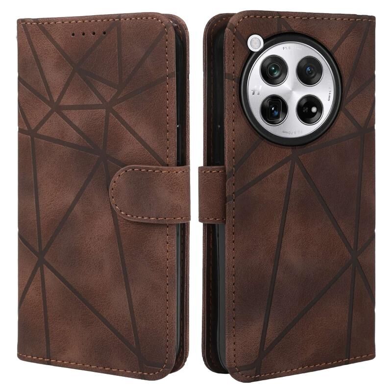 Για OnePlus 12 δέρμα αίσθηση γεωμετρικές γραμμές δέρμα τηλέφωνο υπόθεση (καφέ)