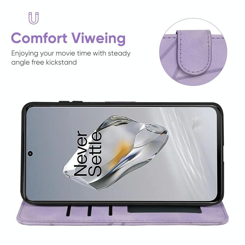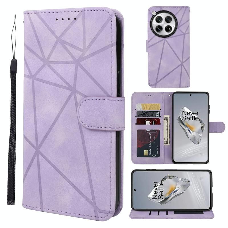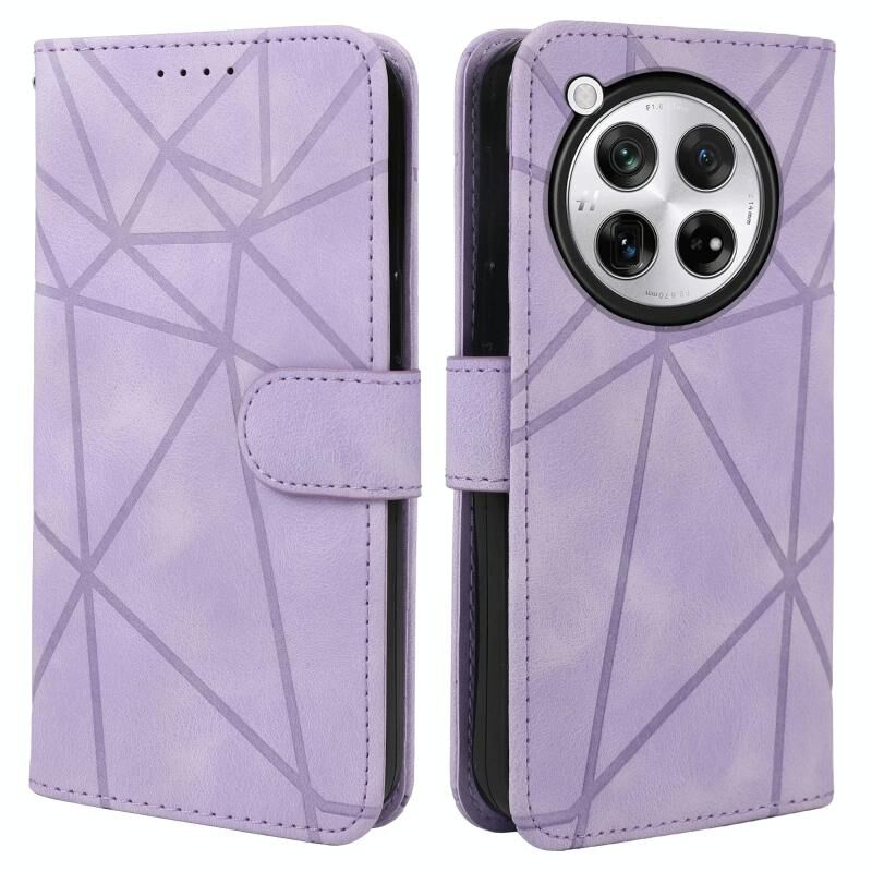 Για OnePlus 12 Skin Feel γεωμετρικές γραμμές δερμάτινη θήκη τηλεφώνου (μωβ)