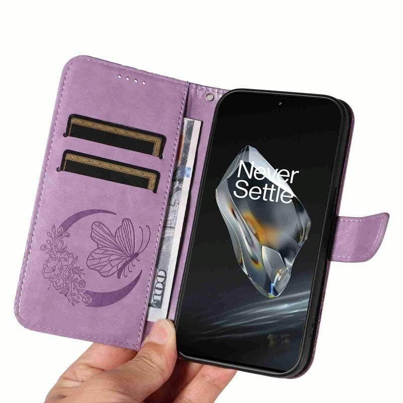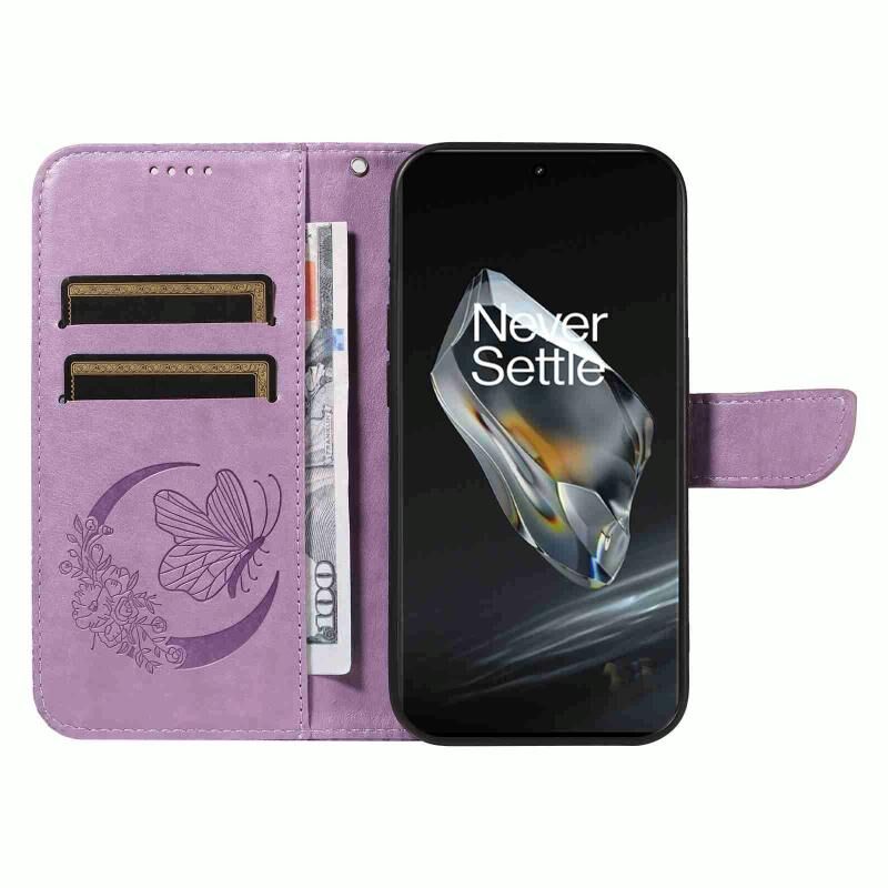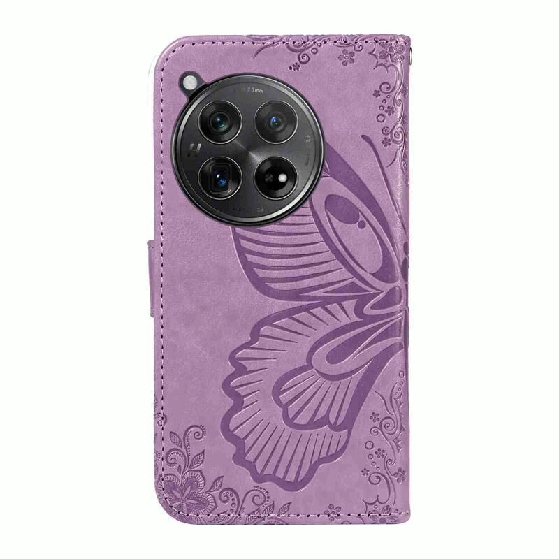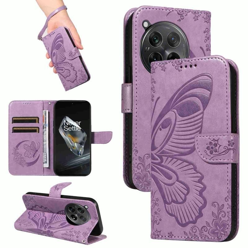 Θήκη τηλεφώνου από δέρμα με ανάγλυφο σχέδιο πεταλούδας για OnePlus 12 (Μπλε)