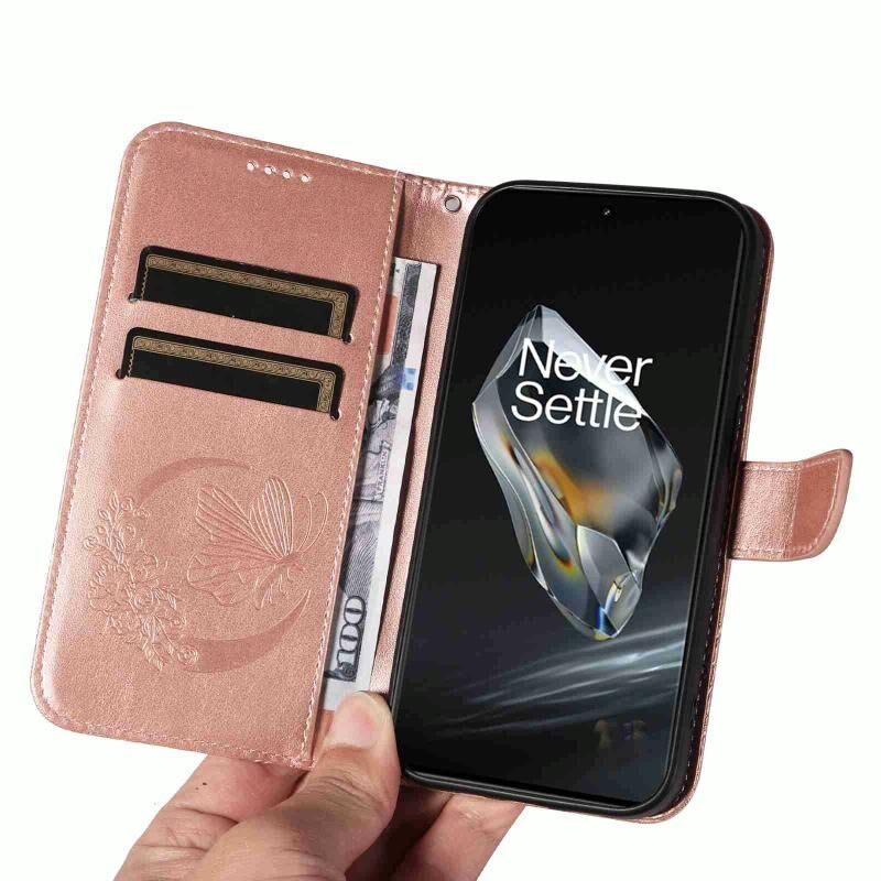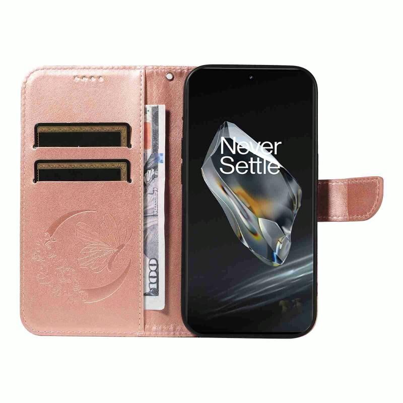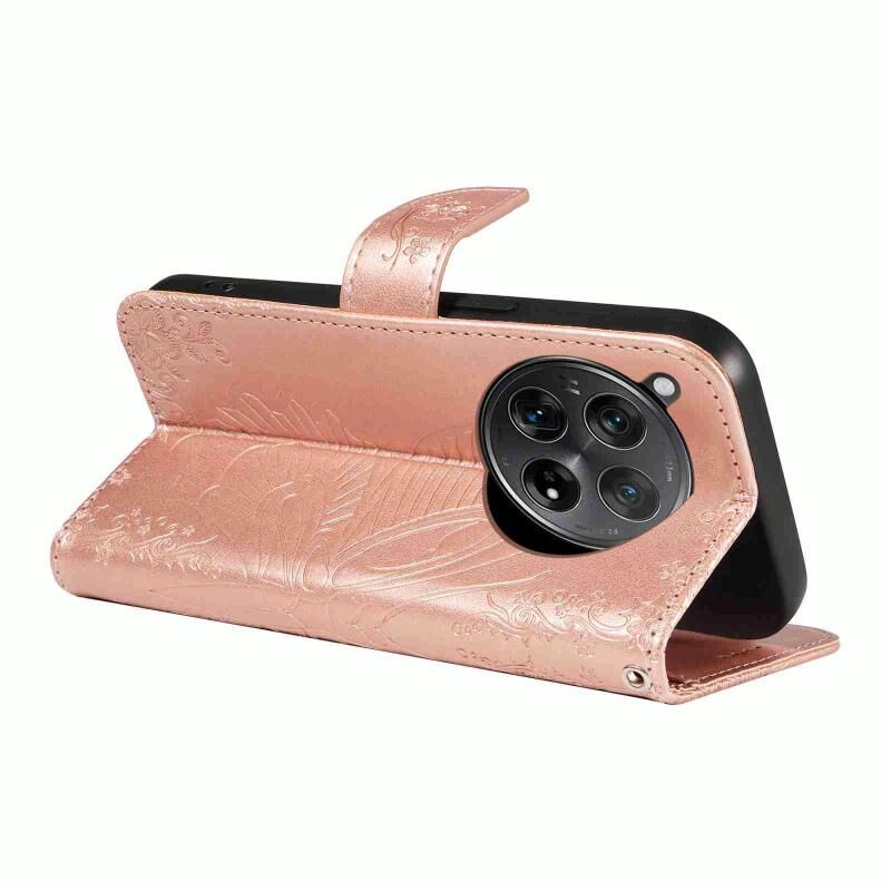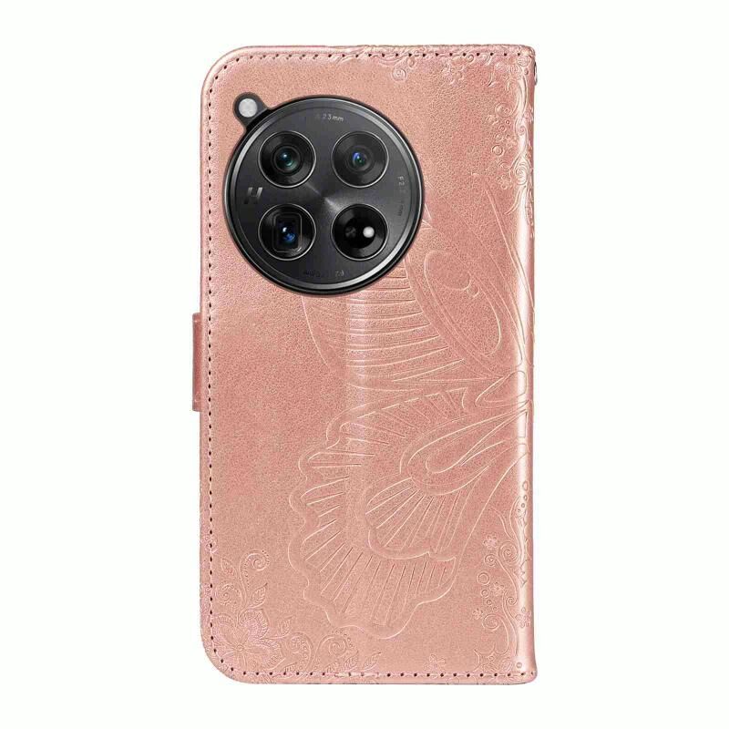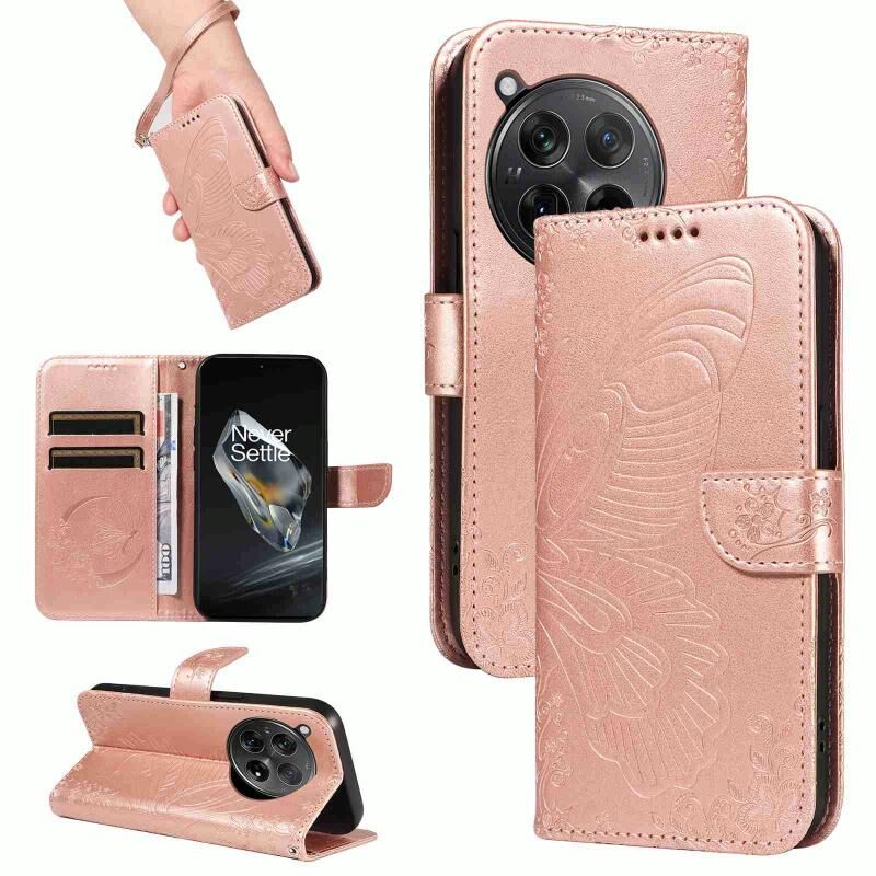 Θήκη τηλεφώνου από δέρμα με ανάγλυφο σχέδιο πεταλούδας για OnePlus 12 (Μπλε)