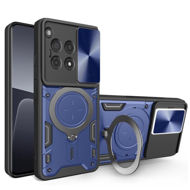 For OnePlus 12R 5G CD Texture Sliding Camshield Magnetic Holder Phone Case(Blue)