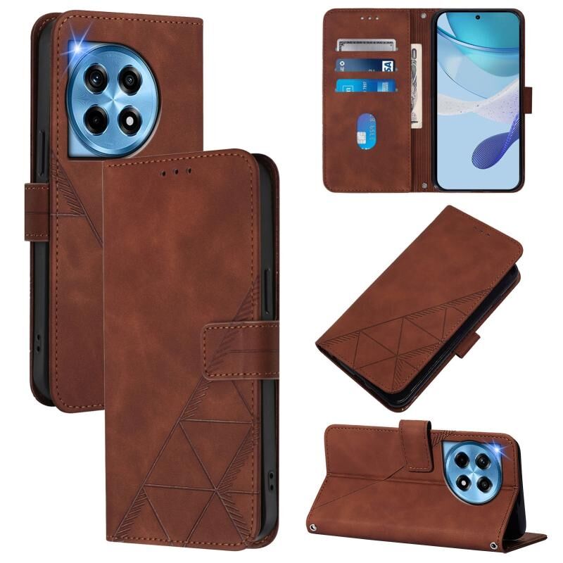 Για OnePlus 12R 5G Παγκόσμια Crossbody 3D ανάγλυφο Flip δέρμα υπόθεση τηλεφώνου (καφέ)