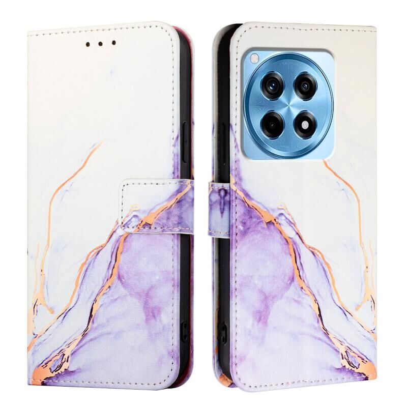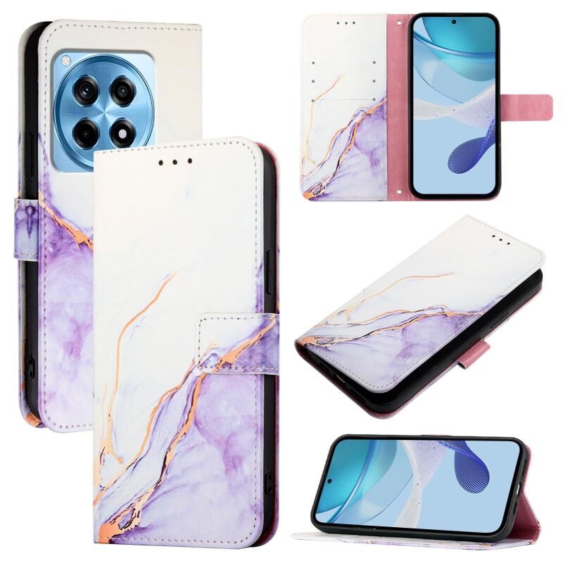 For OnePlus 12R 5G Global PT003 Marble Pattern Flip Leather Phone Case(White Purple)