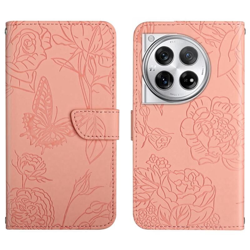 For OnePlus 12R 5G Global Skin Feel Butterfly Peony Embossed Leather Phone Case(Pink)