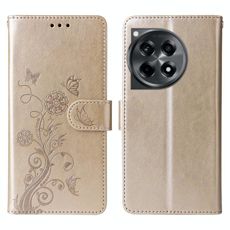 Θήκη τηλεφώνου από δέρμα με ανάγλυφα σχέδια πεταλούδας και λουλουδιών για OnePlus 12R / Ace 3 5G (Μωβ)