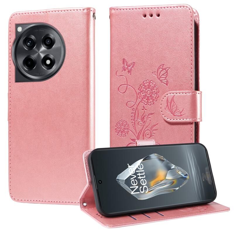 Θήκη τηλεφώνου από δέρμα με ανάγλυφα σχέδια πεταλούδας και λουλουδιών για OnePlus 12R / Ace 3 5G (Μωβ)