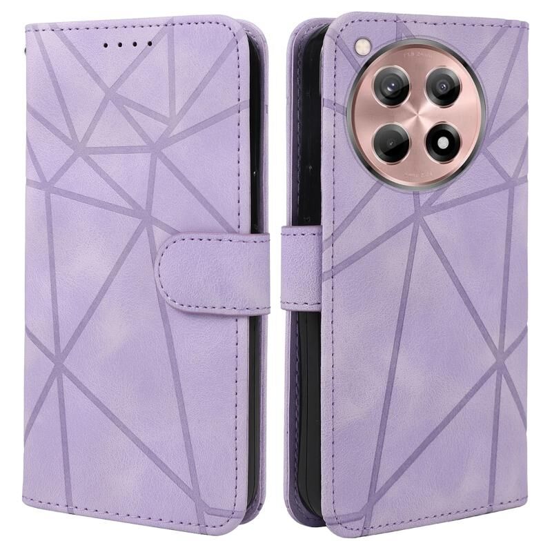 Για OnePlus 12R / Ace 3 Skin Feel γεωμετρικές γραμμές δερμάτινη θήκη τηλεφώνου (μωβ)