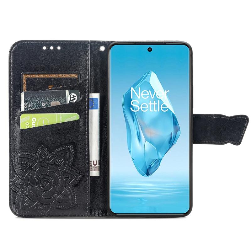 For OnePlus 12R Butterfly Love Flower Embossed Leather Phone Case(Black)