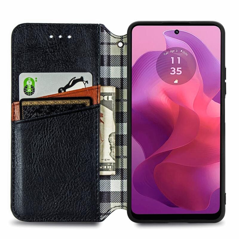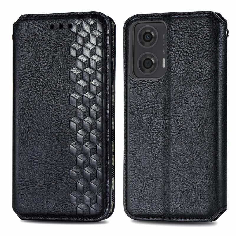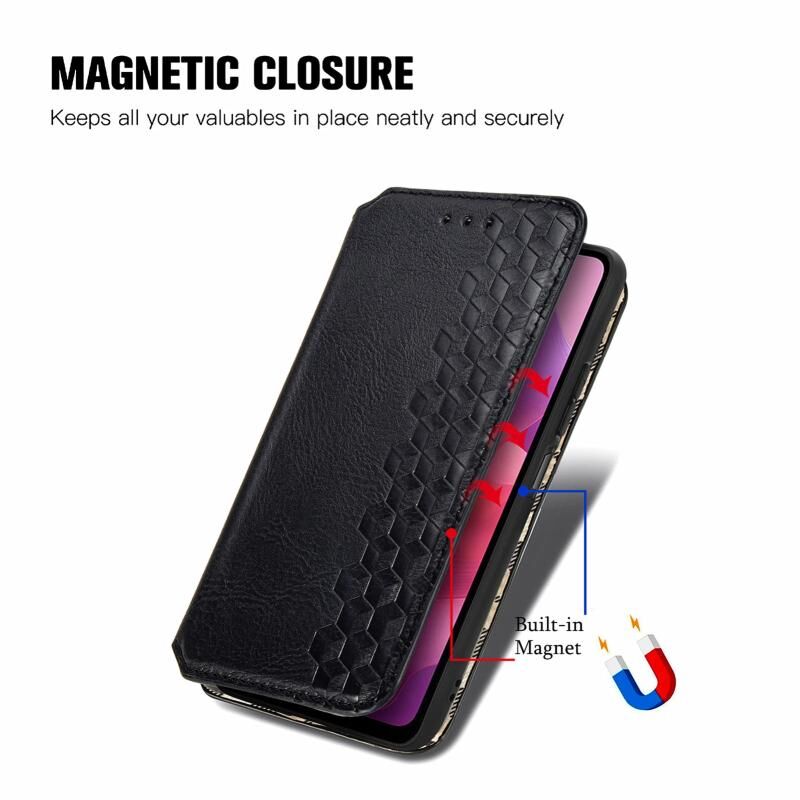 Για OnePlus 12R Cubic Grid πιέζεται μαγνητική δερμάτινη θήκη τηλεφώνου (Μαύρο)