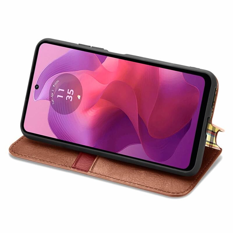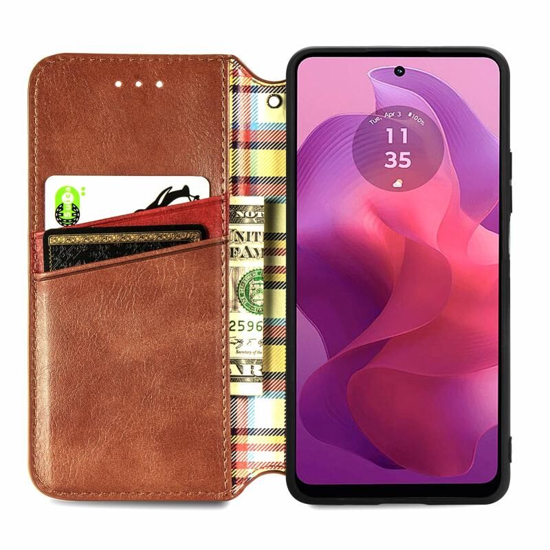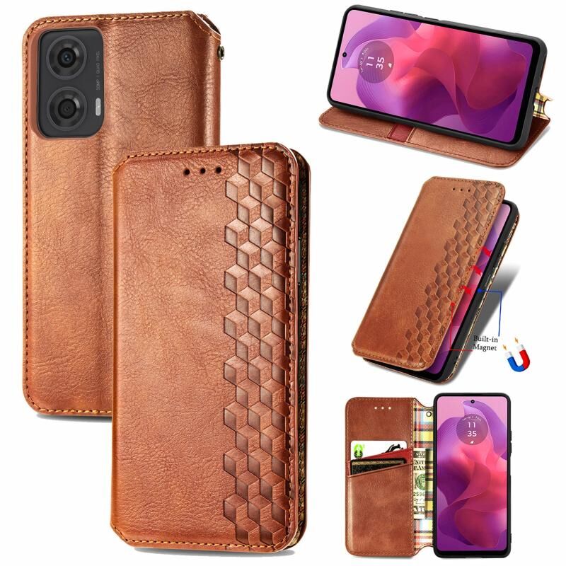 Για OnePlus 12R Cubic Grid πιέζεται μαγνητική δερμάτινη θήκη τηλεφώνου (καφέ)