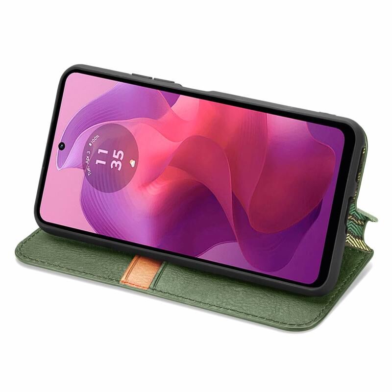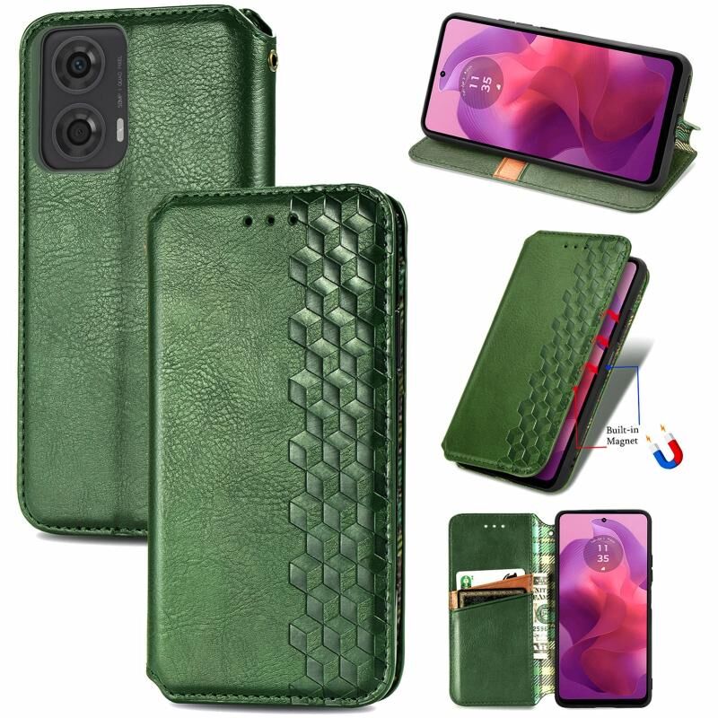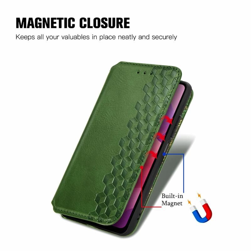 Για OnePlus 12R Cubic Grid πιέζεται μαγνητική δερμάτινη θήκη τηλεφώνου (πράσινο)