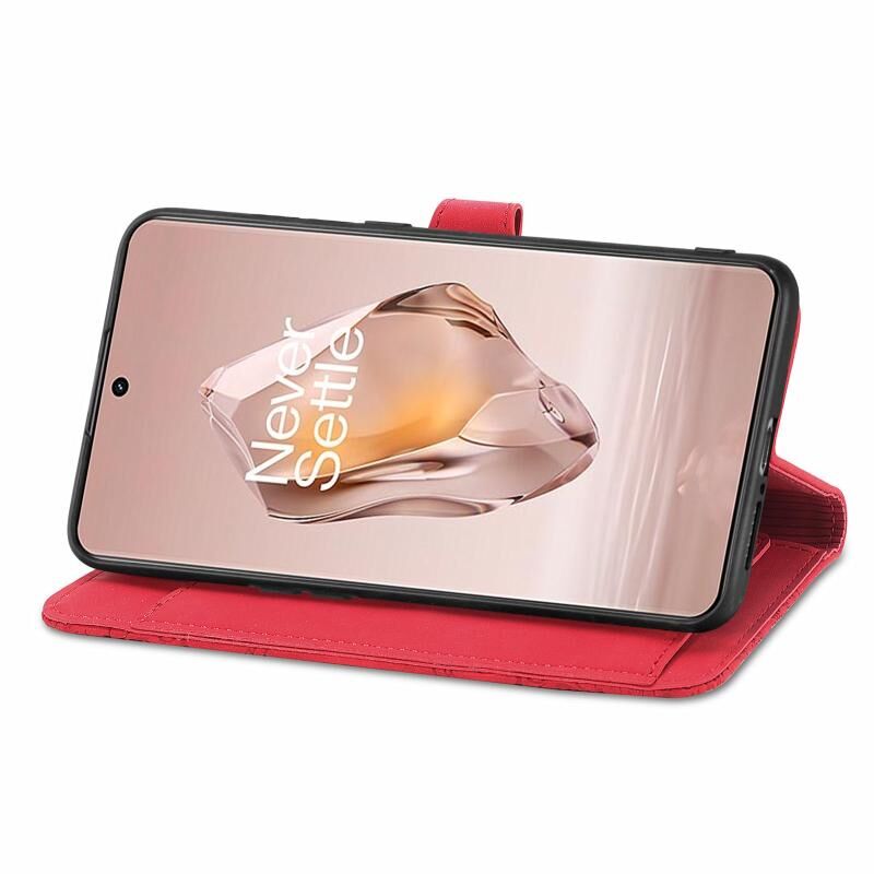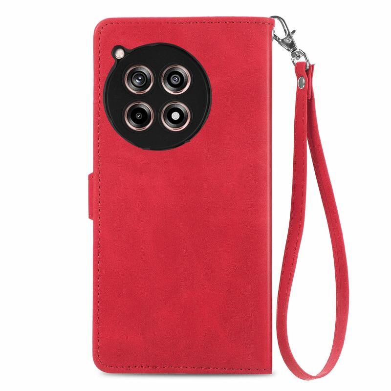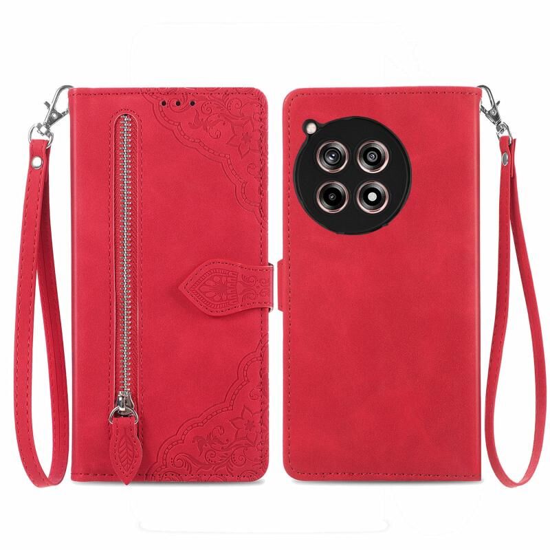 Για OnePlus 12R ανάγλυφο λουλούδι φερμουάρ δερμάτινη θήκη τηλεφώνου (κόκκινο)
